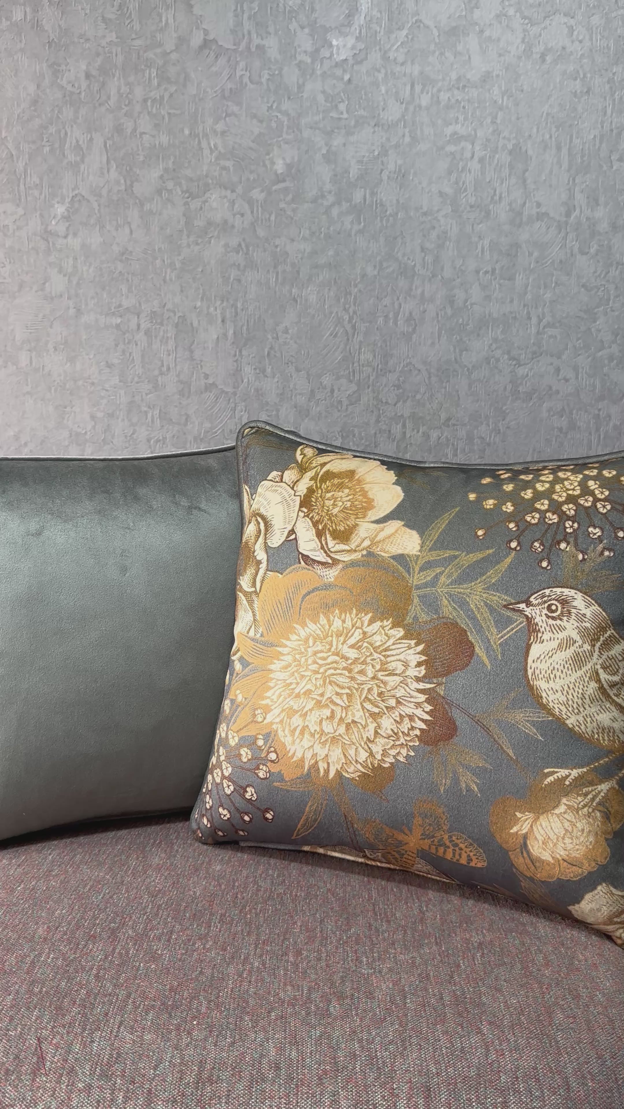 ROBIN Serisi, klasik illüstrasyon tarzındaki kuş ve çiçek desenlerini kadife kumaşın derin ve tok dokusuyla buluşturur. Zengin renk geçişleri ve detaylı desen yapısı, mekâna güçlü bir karakter kazandırırken; kadifenin yumuşak yüzeyi ürüne sofistike bir duruş sağlar.